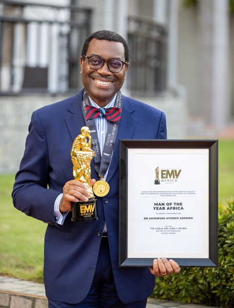 African Development Bank President Dr. Akinwumi Adesina has been named 2022 Man of the Year (Africa) by Exclusive Men of the Year (EMY), for his visionary leadership as the president of the African Development Bank Group and for his outstanding contribution to Africa during his period as agriculture minister of Nigeria.