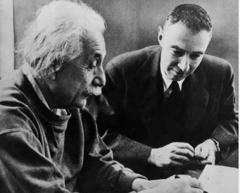(Albert Einstein and Robert Oppenheimer*, who founded the Bulletin’s Board of Sponsors, photo credit: BAS)