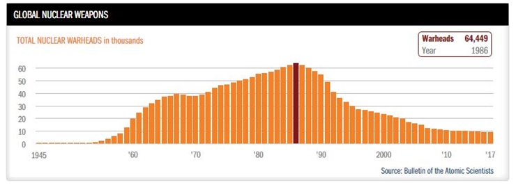 (The annual number of nuclear weapons has declined sharply after peaking in 1986)
