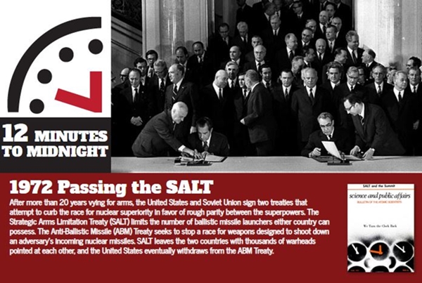 At 23:48, the clock was pushed back with the signing of the Strategic Arms Limitation Treaty (SALT) and the Treaty on the Limitation of Anti-Ballistic Missile Systems signed between the U.S.A. and the U.S.S.R.