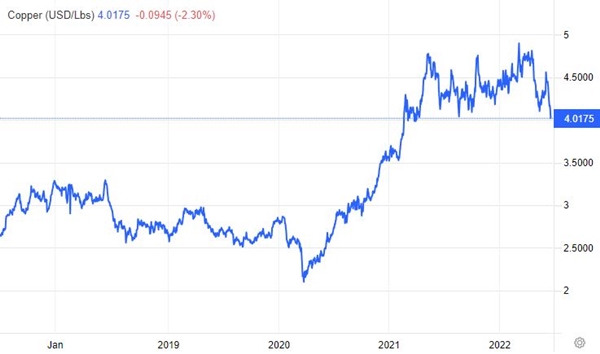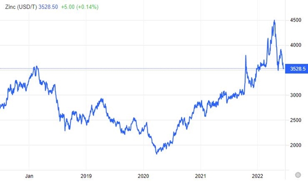 (Copper and zinc price trends over the past five years. Source: Trading Economy)
