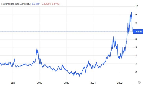 (Natural gas price trend over the past 5 years. The price seemed to stabilize after rising