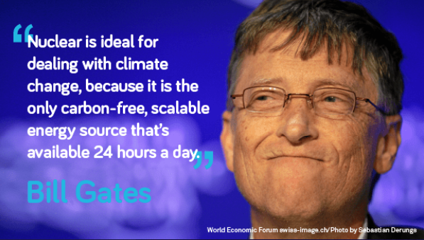 (“Nuclear is ideal for dealing with climate change, as the only carbon-free, scalable energy source that’s available 24 hours a day.”—Bill Gates—Source: Tera Power)
