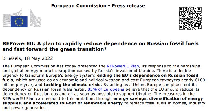title “REPowerEU: A plan to rapidly reduce dependence on Russian fossil fuels and fast forward the green transition”)