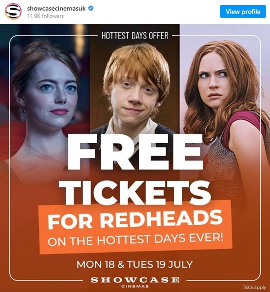 What in the world is with letting red-haired customers go to the movie theaters for free? It happened in England.