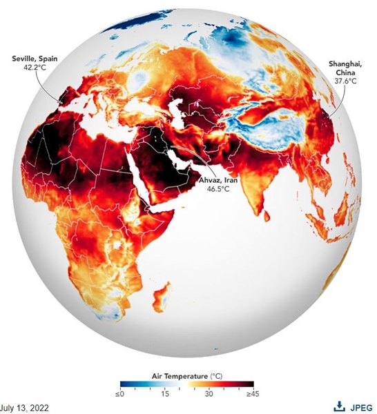 (Temperature by region on July 13, 2022. Source: NASA)