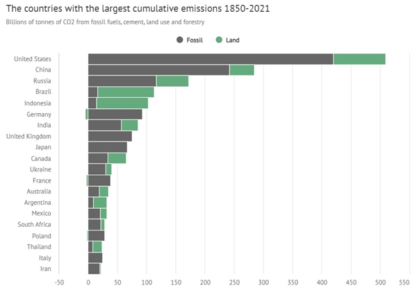 According to the thesis, between 1990 and 2014, the world's two largest emitters of greenhouse gases, the United States and China, caused global losses of more than USD 1.8 trillion each, and the top five greenhouse gas emitters, the United States, China, Russia and if you add up the damage done to other countries by India and Brazil, it is said that the total amount comes out to USD 6 trillion dollars.