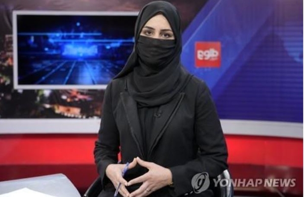 (Female anchor covering the news under the direction of the Taliban. Source: Yonhap News)