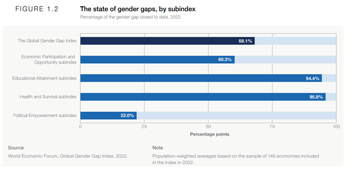 According to the 2022 Global Gender Gap Index, the gender gaps in