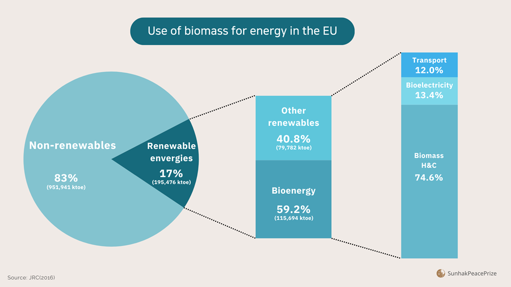 Use of biomass for energy in the EU in 2016 / Source: JRC