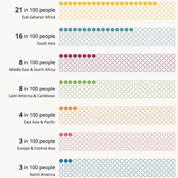Recent World Bank data reveals that around 828 million people were undernourished in 2021, constituting 1 in 10 of the world’s population. Malnutrition is particularly prevalent in regions like sub-Saharan Africa, South Asia, Middle East and North Africa.