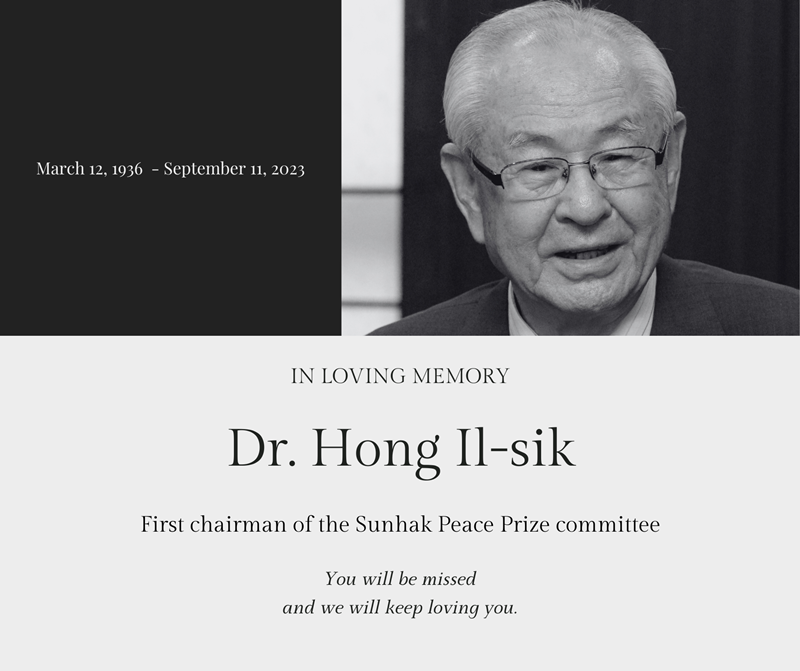 We express deep respect and gratitude for Chairman Hong Il-sik's efforts and dedication in making the Sunhak Peace Prize an important platform for world peace and harmony. May he rest in peace.