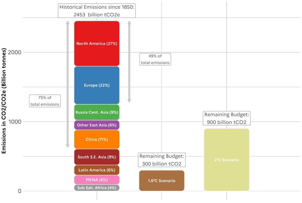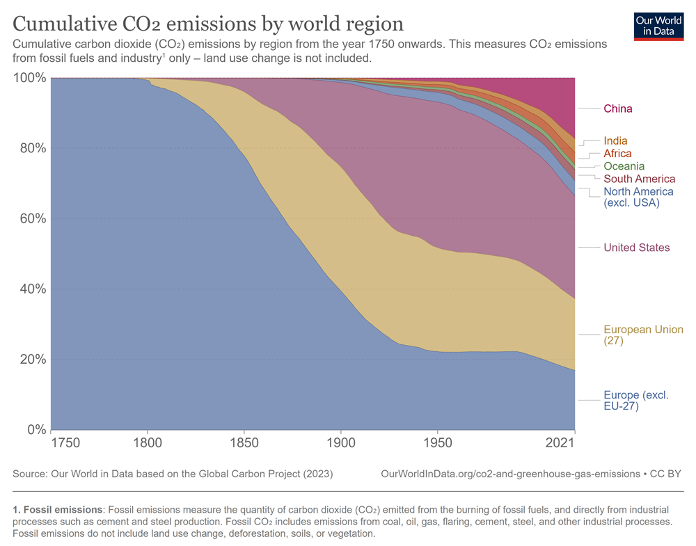 반면 개도국들이 모여있는 글로벌 남반구 아프리카와 남미의 누적배출량 비율은 각각 2.88%, 2.62%로 매우 낮습니다.