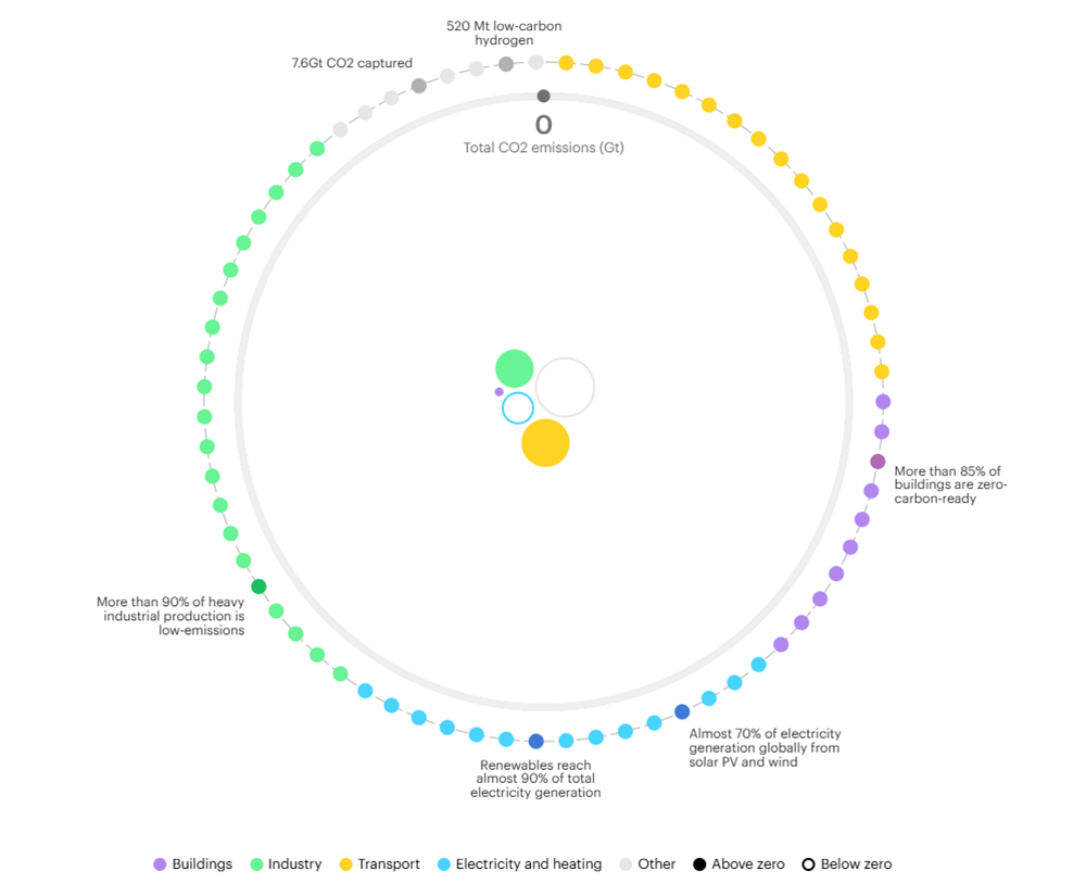 ∎ 이미 배출된 탄소: 흡수/제거(CO₂ 7.6Gt 포집, 520Mt 저탄소 수소 활용)