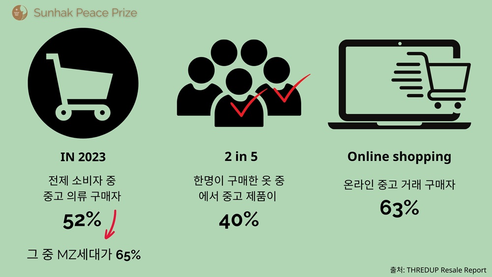 2023년 한 해 동안 전체 소비자의 52%가 중고 의류를 구매했다고 하는데요, Z세대와 밀레니얼 세대만 따지면 이 수치는 무려 65%에 달한다고 합니다.