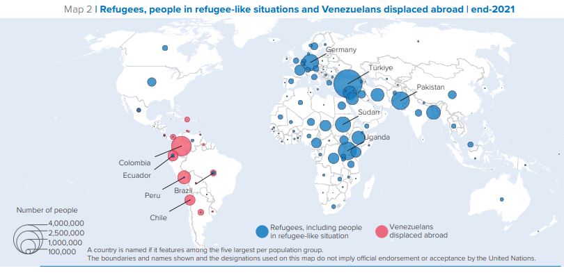 자신의 나라를 떠나 다른 국가의 보호를 받는 난민이 가장 많이 발생한 나라는 시리아(685만 명), 베네수엘라(460만 명), 아프가니스탄(271만 명), 남수단(236만 명), 미얀마(117만 명) 순입니다.