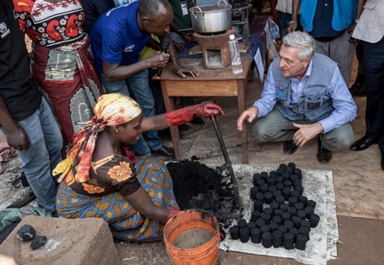 (탄자니아에 있는 난민 캠프를 방문한 필리포 그란디 대표 오른쪽, 출처 유엔난민기구)