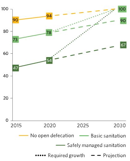 6.2 2030년까지 여성과 여아 및 취약 계층의 필요에 특별한 주의를 기울이면서, 모두에게 적절하고 공평한 위생시설에의 접근을 달성하고 야외 배변을 근절한다.