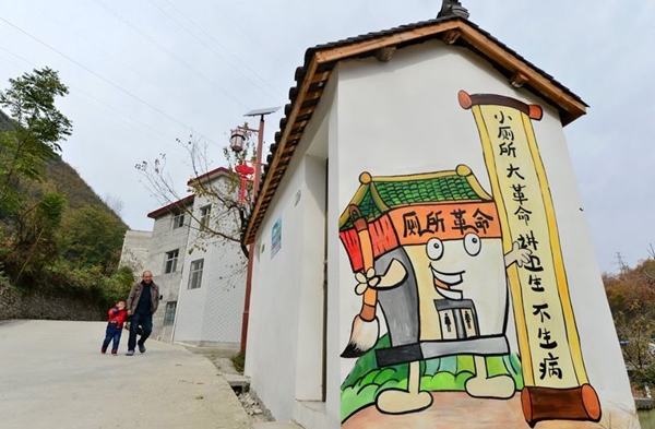 (중국 후베이성 작은 화장실 큰 혁명, 위생에 주의하면 아프지 않아요캠페인 벽화)