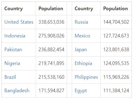 (인구 1억 명이 넘는 12개 국가, 출처 유엔)