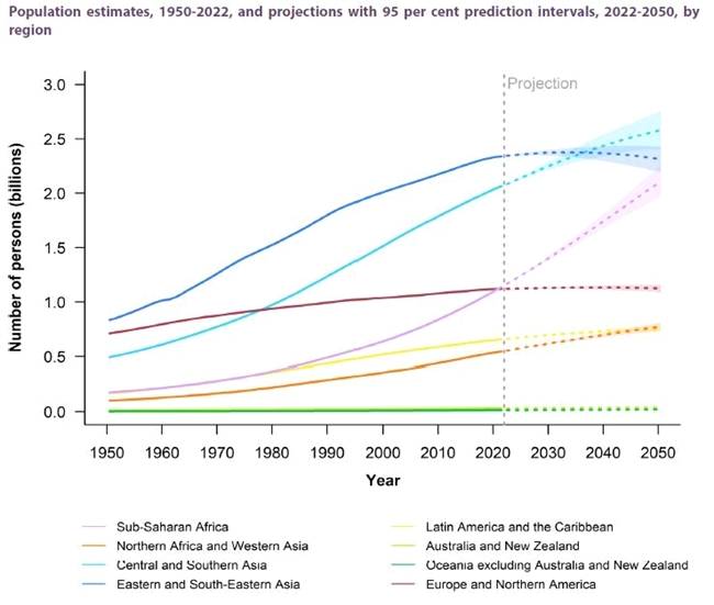 미국의 인구정보기구인 세계인구리뷰(WPR)2050년까지 아프리카의 인구가 24억 명에 달하고 2100년에는 41억 명으로 늘어 전 세계 인구의 3분의 이상이 될 것으로 예상했습니다.